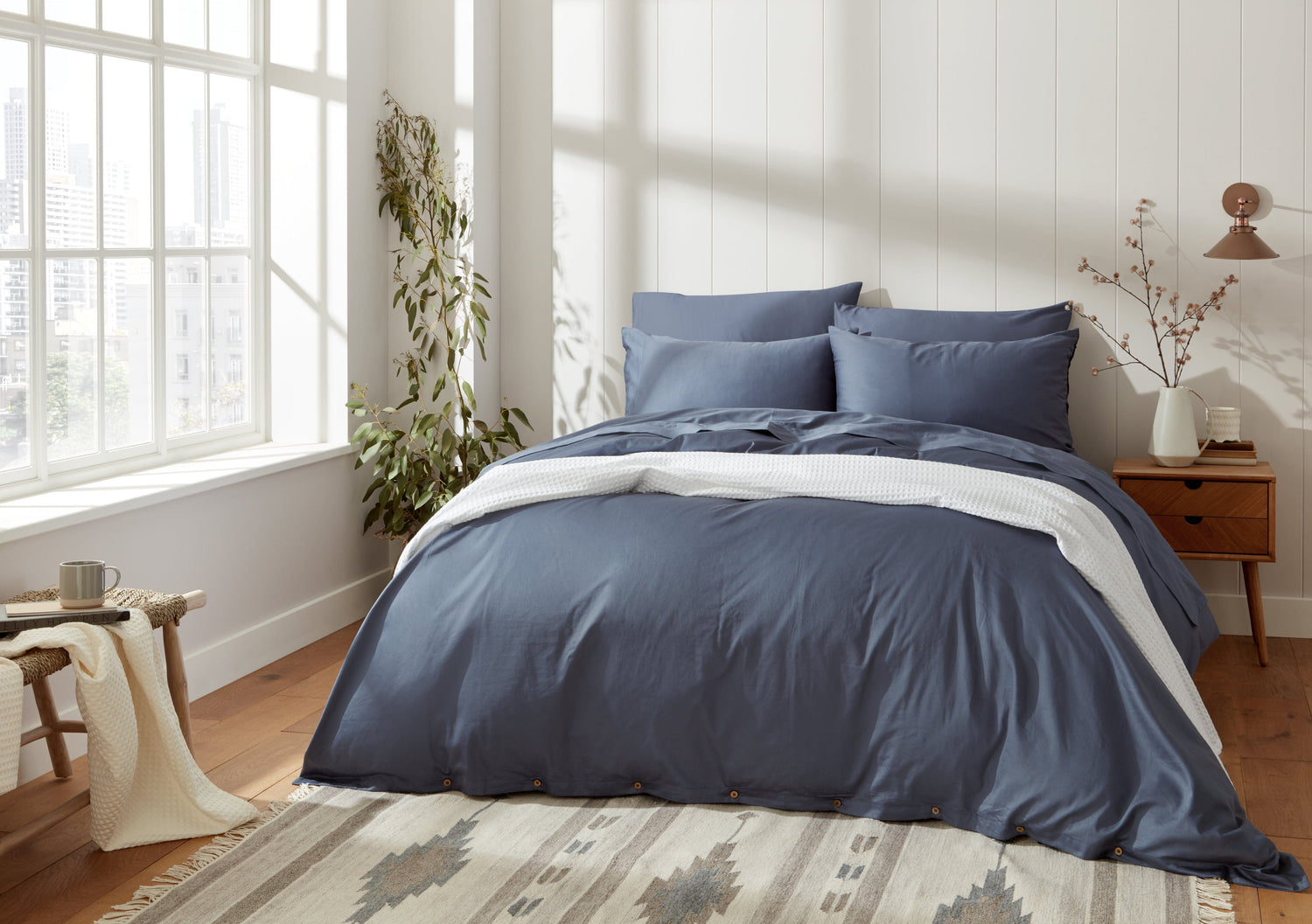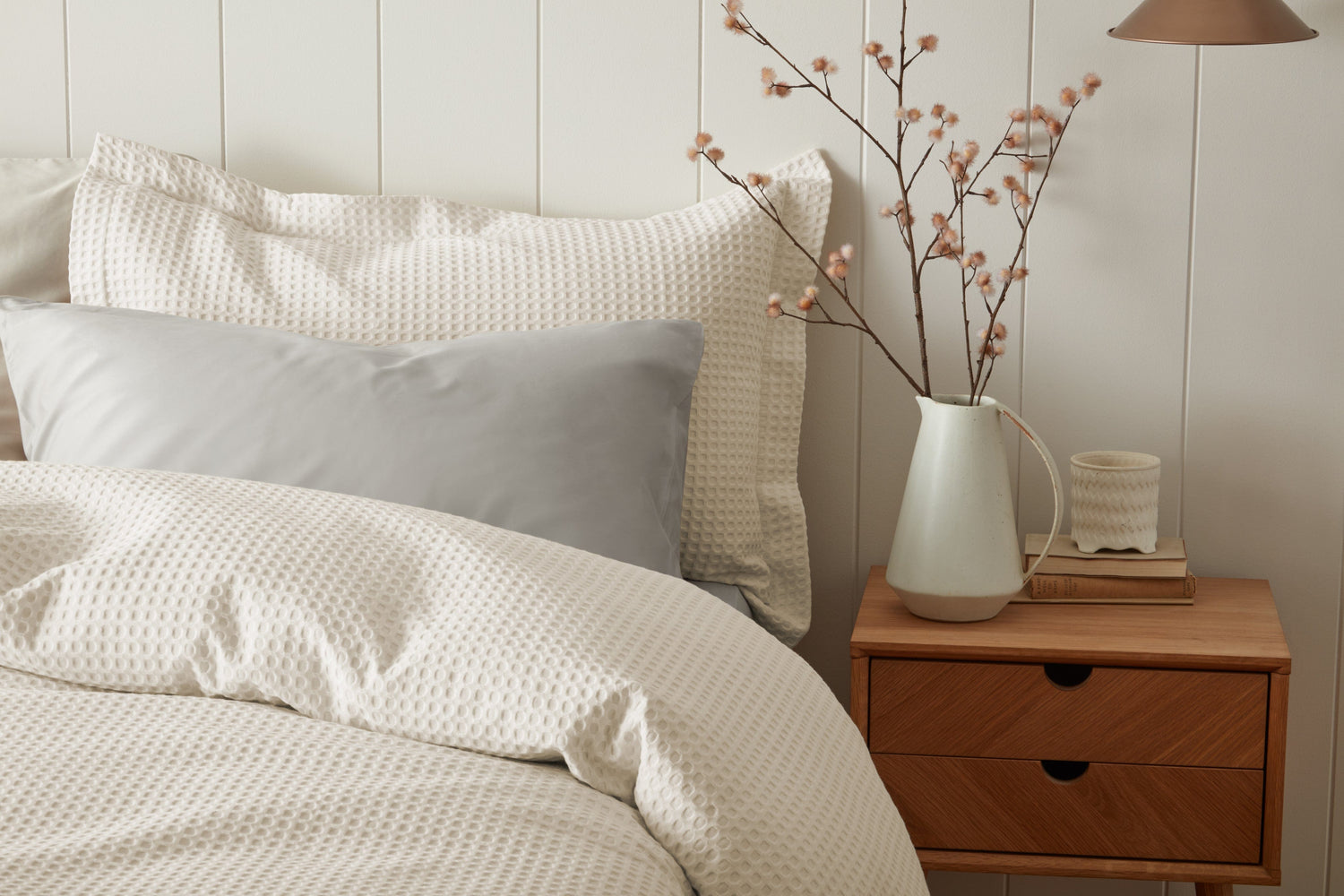 Our duvets and pillows offer ideal weight and warmth, delivering cloud-like softness and year-round comfort with sustainable design.