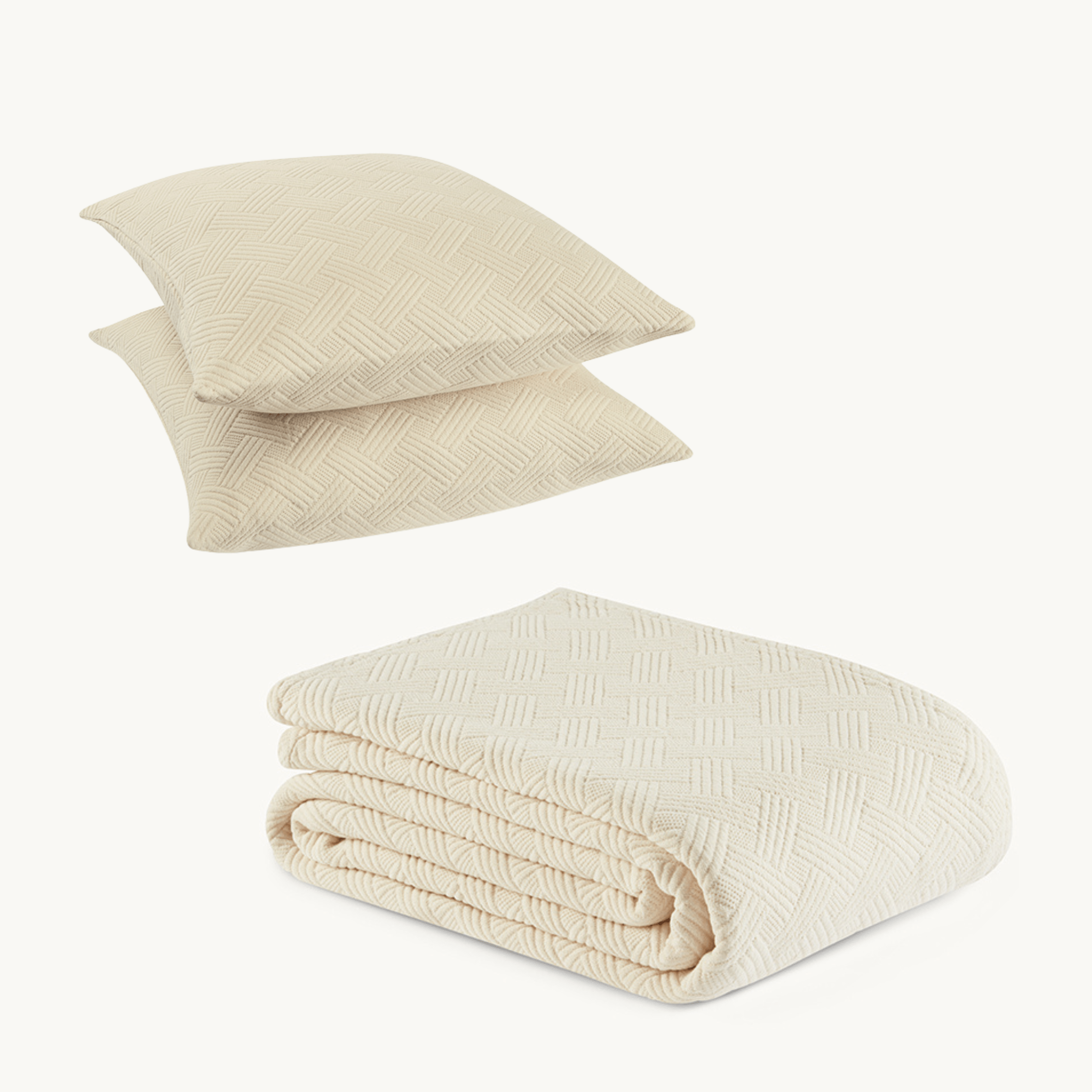 Bring effortless harmony to your home with our Leia Bundle, featuring a matching bedspread and two cushion covers in our signature textured 100% cotton fabric.